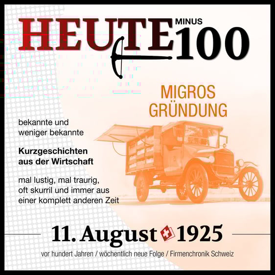 100 Jahre Migros! Heute vor genau hundert Jahren gründete Gottlieb Duttweiler mit seinem Cousin Paul Meierhans, dem Buchhalter Rudolf Peter, dem Prokuristen Fritz Keller und dem Rechtsanwalt Hermann Walder eine Aktiengesellschaft mit einem Kapital von 100'000 Franken. Aktiengesellschaft? Jawohl. Zur Genossenschaft sollte die Migros erst später werden.