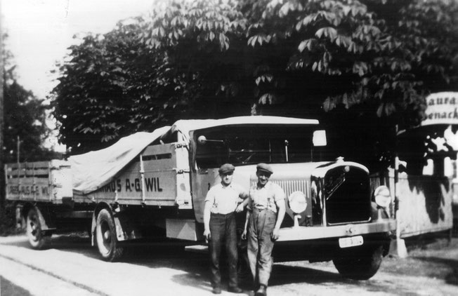 Der erste Lastwagen, den die Lagerhaus AG Wil im Jahr 1928 anschaffte, war ein benzinbetriebener Saurer mit einer Nutzlast von fünf Tonnen. Der Treibstoffverbrauch war nicht eben klein: Der