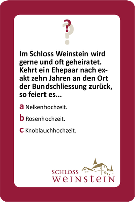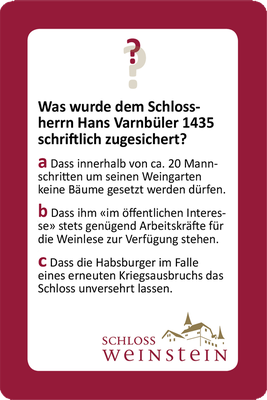 Das Quiz "650 Jahre – 65 Fragen" ist ab sofort im Schloss Weinstein erhältlich.